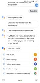 The camera-based Google Lens experience provides functionality similar to Bixby’s AR features. First, launch Google Assistant on the device and then tap on the Google Lens logo in the bottom right corner. This will launch the camera UI and that’s when you point at an object and if Lens recognizes it, it will provide relevant information about the object.