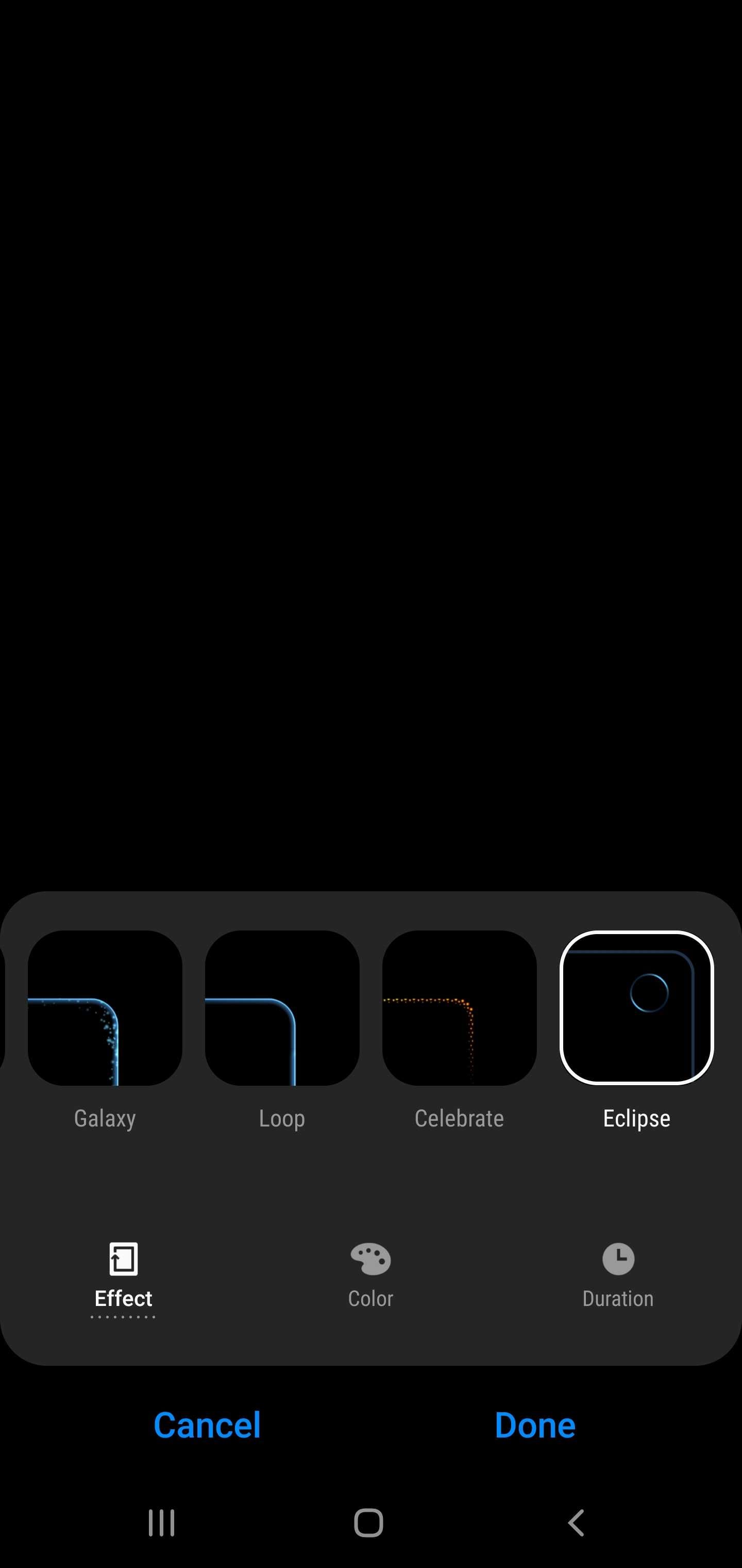 The Eclipse effect works for all kinds of notifications when you’re using the phone, though, so it serves some purpose. For using the Eclipse effect, you will need to install the EdgeLighting+ plugin from the Family tab of the Good Lock app (or update it to the latest version if you already have it installed). Then just open EdgeLighting+ from the app drawer, tap Effect, then scroll to the end of the list to select and customize the Eclipse effect. You may also need to separately enable Edge Lighting from the Settings » Display » Edge screen menu on your Galaxy S10.