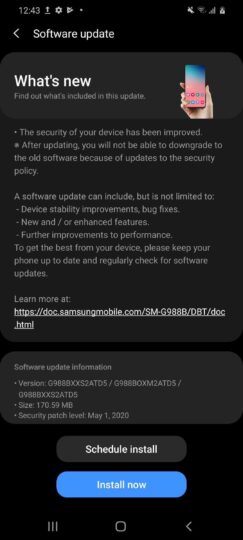 Since it’s just a security update, we can hope it won’t break any features or introduce bugs, as that will only further sour the experience of owning the Galaxy S20, S20+, or S20 Ultra for many customers after a string of issues Samsung has had to fix with recent updates. The update is currently rolling out in a number of countries in Europe for both the LTE and 5G models, and it shouldn’t be long before it starts making its way to other regions, including the United States.