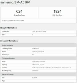 Aside from the Galaxy A71s 5G for Verizon, Samsung now seems to be developing a Galaxy A51 5G variant for the same US-bound carrier. An unannounced Galaxy device carrying model number SM-A516V has popped up in the online benchmark Geekbench and was approved by the Wi-Fi Alliance and the NFC Forum earlier this month.