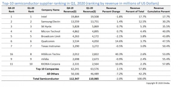 World's Top 10 Semiconductor Brands Q1 2020 Omdia
