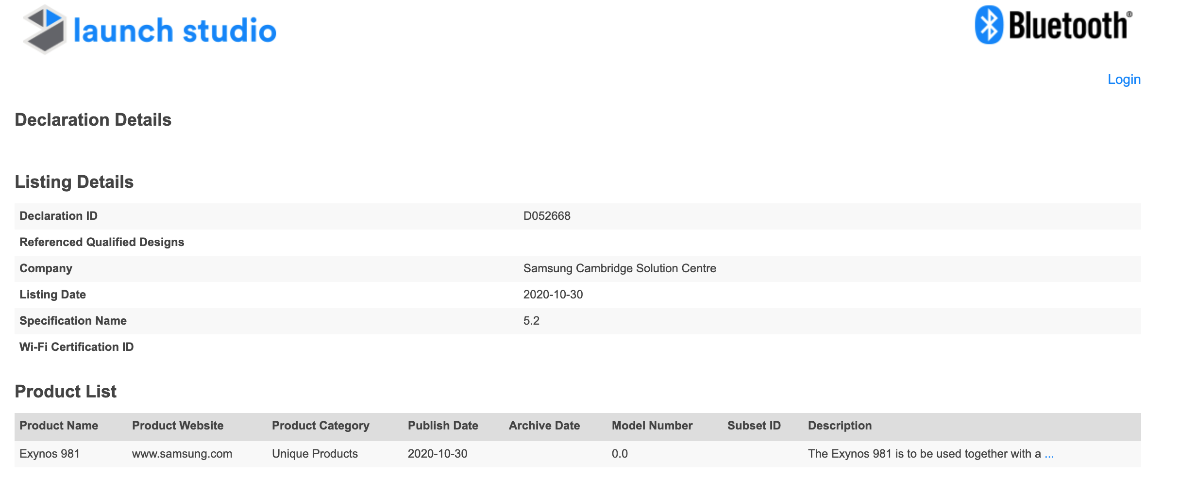 The Bluetooth SIG listing doesn’t reveal much about the Exynos 981 apart from its support for the Bluetooth 5.2 standard. This filing was made by the Samsung Cambridge Solution Centre which is a part of Samsung Electronics.