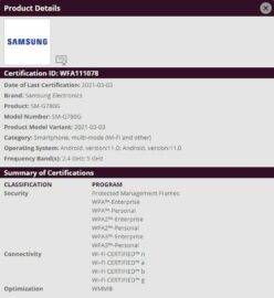 Samsung is seemingly developing another Galaxy S20 FE variant. Clues of its existence have been found at the Wi-Fi Alliance where a new Galaxy phone carrying model number SM-G780G was approved last week. This is the first time for the SM-G780G model number to show up online, but what’s even more interesting is the fact that the device runs Android 11.