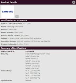 The mysterious new Galaxy S20 FE variants has gained not one, but a total of three approvals from the Wi-Fi Alliance for model numbers: SM-G780G, SM-G780G/DS, and SM-G780G/DSM. They confirm that the variant will be available with single and dual-SIM capabilities.