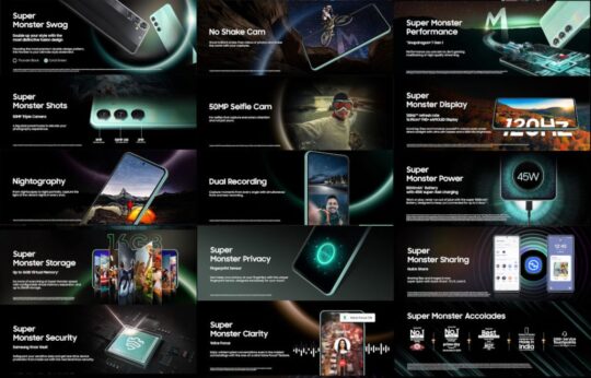 Its connectivity features include GPS, 5G, a dual-SIM card slot, Wi-Fi 6, Bluetooth 5.2, NFC, and a USB Type-C port. It is powered by a 5,000mAh battery and supports 45W fast charging.