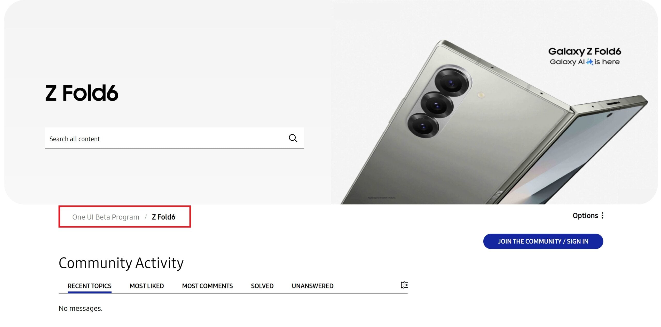 Samsung has created dedicated pages for the Galaxy Z Fold 6 and Galaxy Z Flip 6 in the One UI Beta Program subforum on its community website (thanks for the tip, Tarun!). These pages are currently empty, but once the beta goes live, we should see them fill up with posts from Fold 6 and Flip 6 owners.