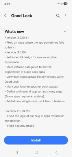The update for Good Lock changes its version to 3.0.10.3 and brings only one change. According to Samsung, it fixes “an issue where the app sometimes fails to launch.” While we didn't face the issue, it is good to know that Samsung has fixed it.