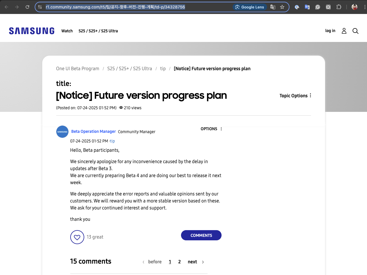 On Samsung’s Community forum for Korea, Samsung says that it will release the fourth beta version of Android 16-based One UI 8.0 next week (between 27-31 July) (via Tarun Vats). The company has also apologised people for delaying the rollout of Beta 4. At the moment, there’s no official information about which changes it will bring.