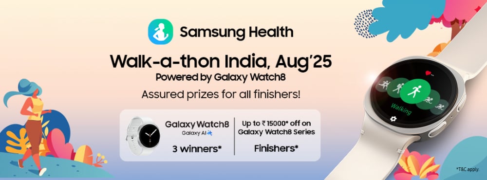 Samsung has announced the third edition of Walk-a-thon India, where, if you walk 200,000 steps in thirty days (between 1 August 2025 to 30 August 2025), you will stand a chance to win a Galaxy Watch 8 or, get INR 15,000 off on the purchase of Samsung’s latest wearable. A great news for people planning to buy the product. So, how do you participate? Read on to know more.