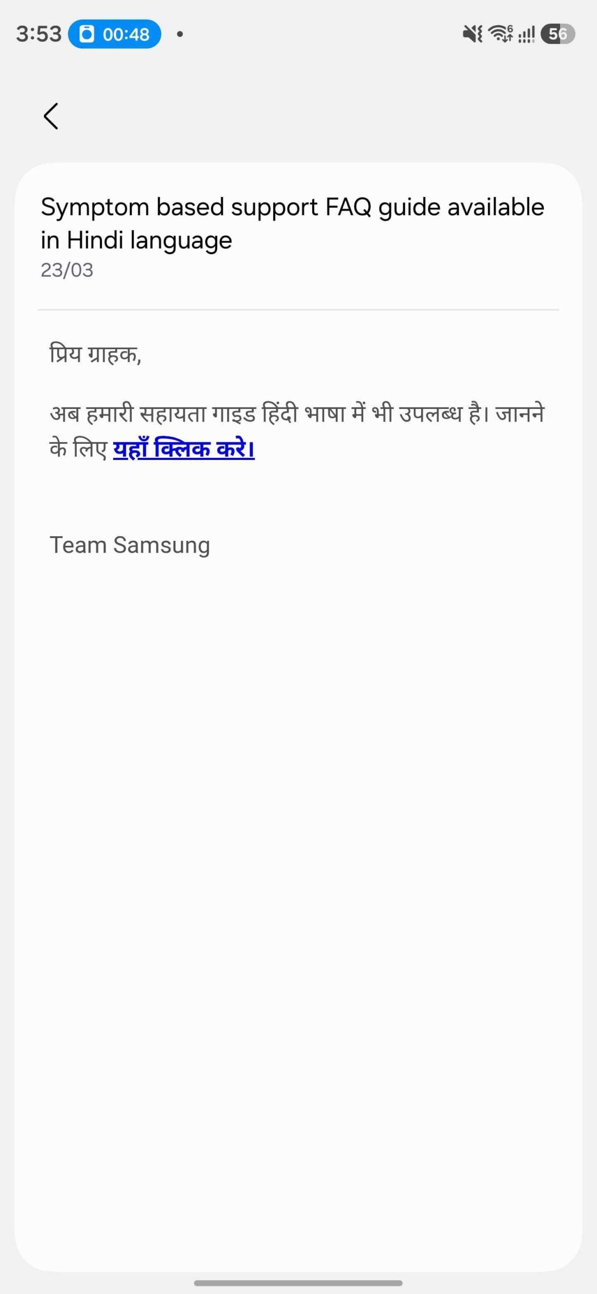 It will help Samsung Galaxy users in the country who understand only Hindi to clear their doubts about the device in an easier way than before. You can check out the official notification above.